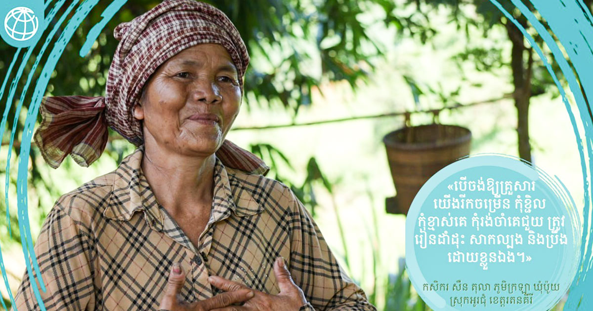 អ្នកស្រីទទួលបានការបណ្តុះបណ្តាលជំនាញដាំដុះនិងរៀបចំដីបន្ថែមពីមជ្ឈមណ្ឌលសម្រាប់វិភាគបញ្ហាអភិវឌ្ឍន៍(Analyzing Development Issues Centre—ADIC) ក្រោមគម្រោងលើកកម្ពស់ជីវភាពប្រកបដោយចីរភាពសម្រាប់ជនជាតិដើមភាគតិចនៅកម្ពុជា (The Cambodia Sustainable Livelihood of Indigenous Communities Project—CSLICP) ។