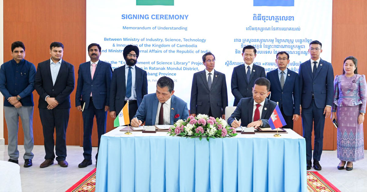 ភ្នំពេញ៖ ក្រសួងឧស្សាហកម្ម វិទ្យាសាស្ត្រ បច្ចេកវិទ្យា និងនវានុវត្តន៍ និងក្រសួងការបរទេសនៃសាធារណរដ្ឋឥណ្ឌា បានចុះអនុស្សរណៈនៃការយោគយល់ ដើម្បីសហការអនុវត្តគម្រោង Quick Impact Project (QIP) ដោយបង្កើតបណ្ណាល័យវិទ្យាសាស្ត្រ នៅស្រុករតនៈមណ្ឌល ខេត្តបាត់ដំបង។