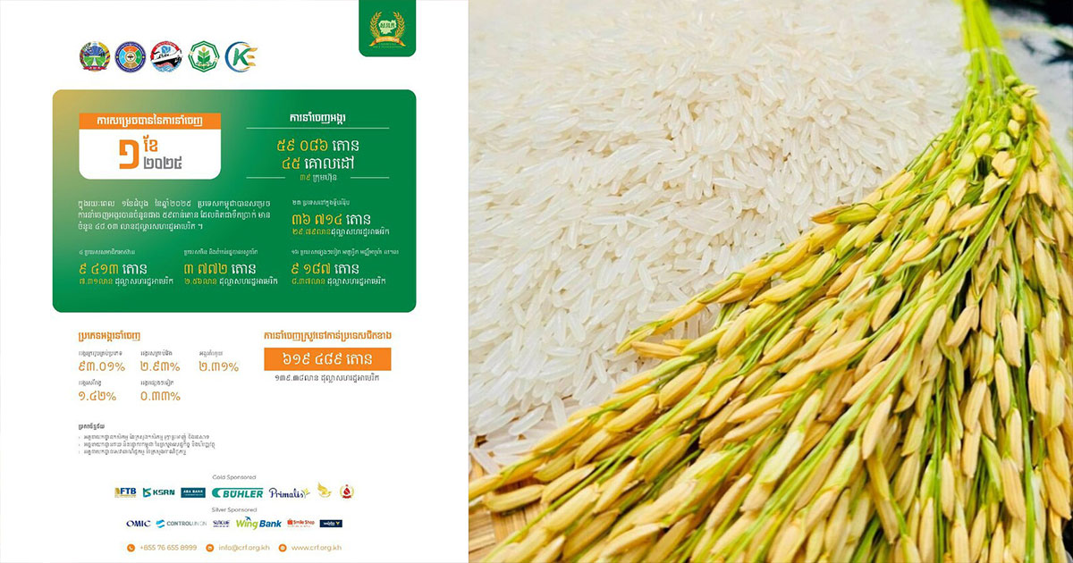 ភ្នំពេញ៖ រយៈពេល១ខែ ដើមឆ្នាំ២០២៥នេះ កម្ពុជាបាននាំចេញអង្ករ ចំនួន ៥៩ពាន់តោន ទទួលបានទឹកប្រាក់ចំនួនជាង៤៨.០៣ លានដុល្លារ និងនាំចេញស្រូវជាង ៦១៩ ៤៨៩ លានតោន ទទួលបានទឹកប្រាក់ជាង ៨.៣៧លានដុល្លារ ។ នេះបើយោងតាមរបាយការណ៍របស់សហព័ន្ធស្រូវអង្ករកម្ពុជា ដែលក្រុមការងារប្រតិបត្តិផ្សព្វផ្សយក្រសួងព័ត៌មានទទួលបាននាពេលថ្មីៗនេះ។