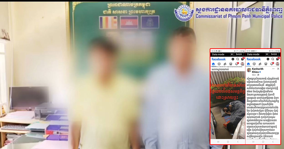 ភ្នំពេញ ៖ បុរសម្នាក់ឈ្នោះ ផាន ភក្ត្រា អាយុ៣៩ឆ្នាំ ត្រូវបានសមត្ថកិច្ចនគរបាលខណ្ឌដង្កោឃាត់រថយន្តរក្សា ទុកនៅអធិការដ្ឋាននគរបាលខណ្ឌដង្កោក្រោមឥទ្ធិពលជាតិស្រវឹង០.៥៤ ហើយបានថតរូបភាពដេកនៅក្បែររបងសាលាខណ្ឌដង្កោបង្ហោះក្នុងបណ្តាញសង្គម Fb នាំឲ្យមានការយល់ច្រឡំលើក្រុមសមត្ថកិច្ចនគរបាលខណ្ឌដង្កោចុះដាក់គោលដៅអនុវត្តជាតិស្រវឹង ត្រូវបានចូលសារភាពចំពោះមុខសមត្ថកិច្ចខណ្ឌដង្កោនៅព្រឹកថ្ងៃទី១៤ ខែឧសភា ឆ្នាំ២០២៥នេះ។