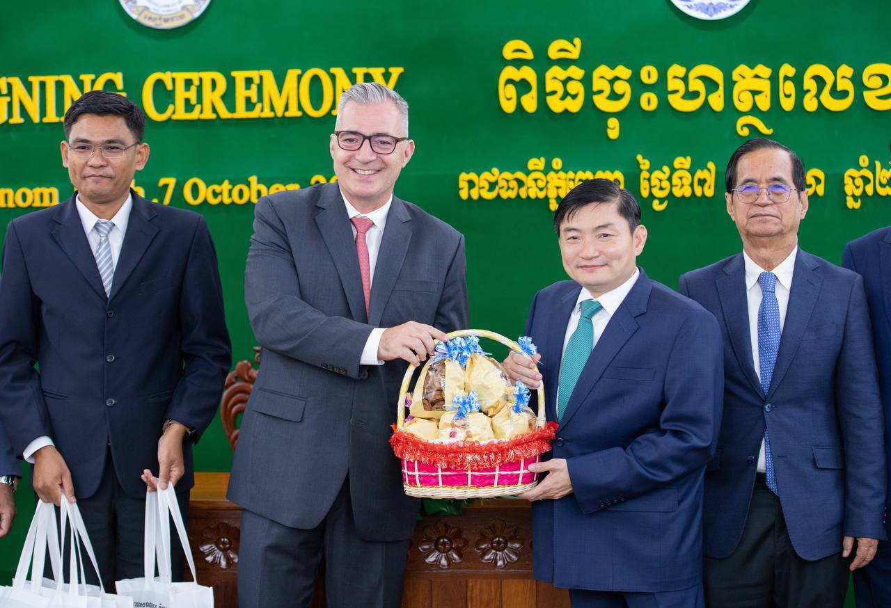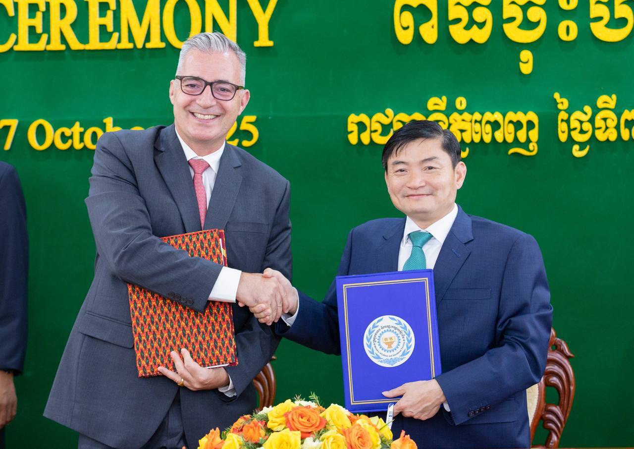 ពិធីចុះហត្ថលេខានេះ ធ្វើឡើងរវាង លោក ហេង សួរ រដ្ឋមន្រ្តីក្រសួងការងារ និងបណ្តុះបណ្តាលវិជ្ជាជីវៈ និងលោក ហ្វ្រាង់ស្វ័រ ស្លូបេលែន នាយកសាលាសណ្ឋាគារ និងទេសចរណ៍ ប៉ូល ឌុយប្រ៊ូល តំណាងអង្គការបណ្តុះបណ្តាល និងវឌ្ឍនភាពកម្ពុជា (ONG Formation Et Progres Cambodge) កាលពីរសៀលថ្ងៃទី៧ ខែតុលា ឆ្នាំ២០២៥។