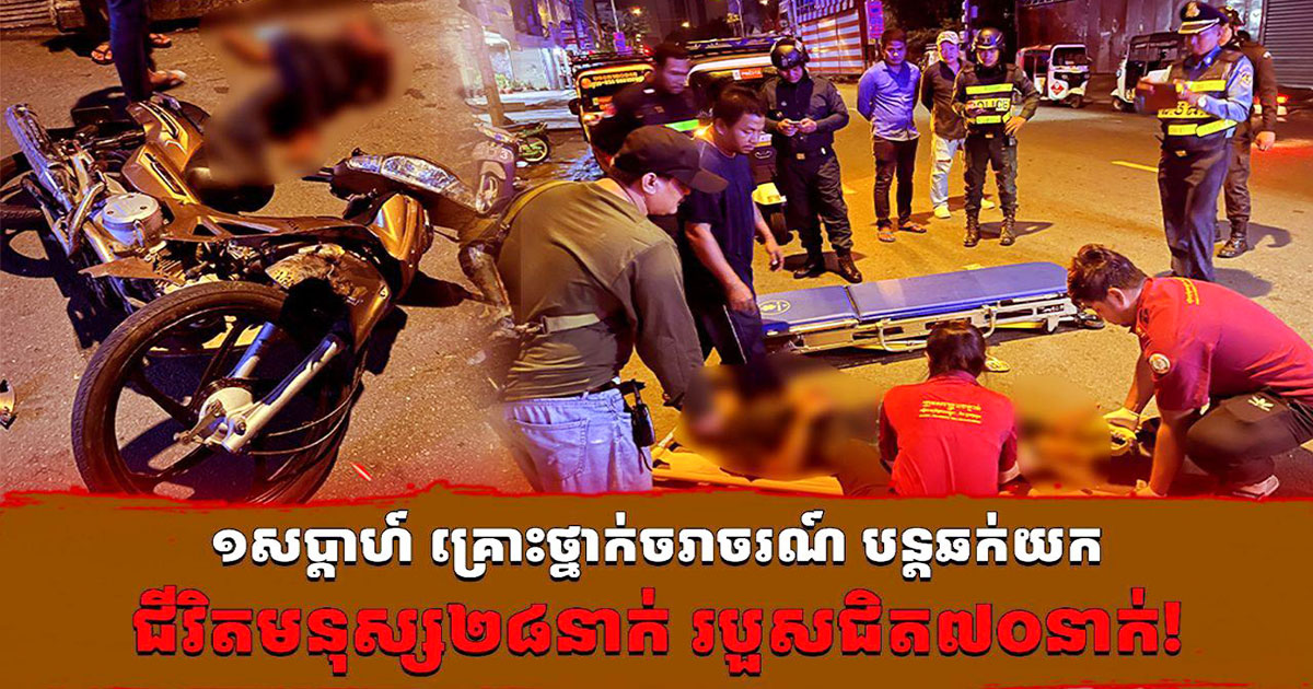 ១សប្តាហ៍ គ្រោះថ្នាក់ចរាចរណ៍ បន្តឆក់យកជីវិតមនុស្ស ២៨នាក់ របួសជិត ៧០នាក់ ១សប្តាហ៍ គ្រោះថ្នាក់ចរាចរណ៍ បន្តឆក់យកជីវិតមនុស្ស ២៨នាក់ របួសជិត ៧០នាក់