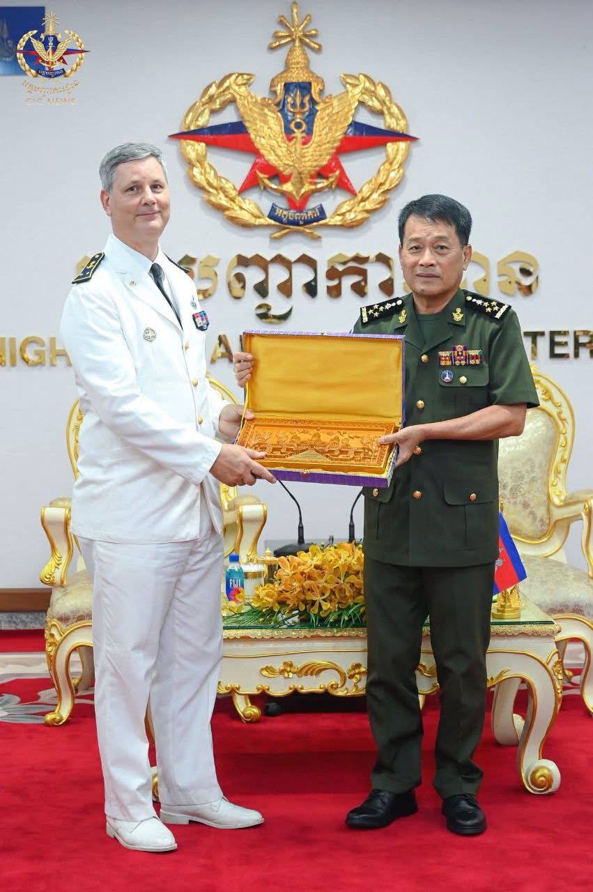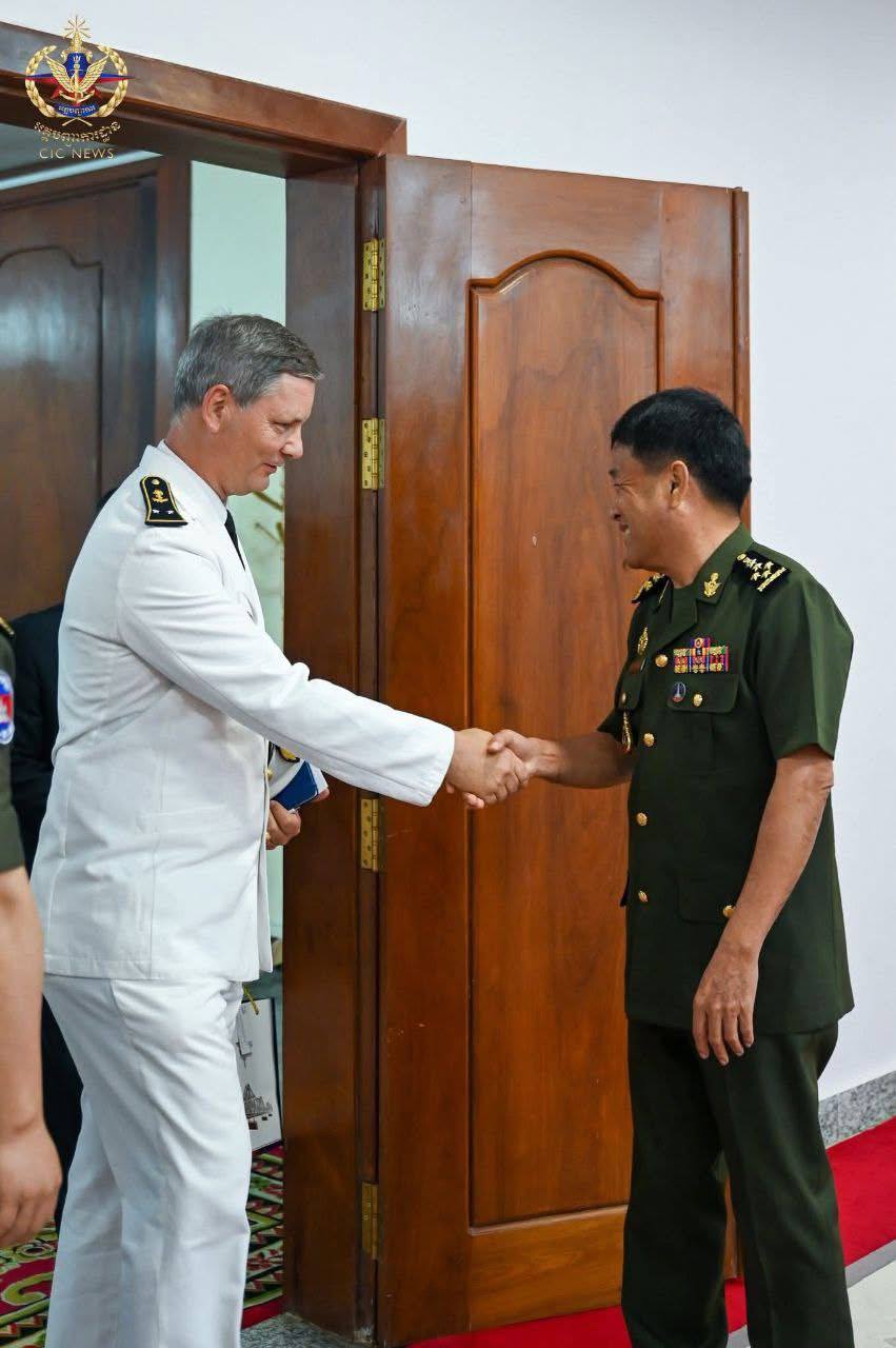 ភ្នំពេញ៖ យោងតាមការបង្ហោះផ្សាយនៅលើបណ្តាញសង្គមរបស់អគ្គមេបញ្ជាការនៃកងយោធពលខេមរភូមិន្ទ នៅថ្ងៃទី១១ ខែវិច្ឆិកា ឆ្នាំ២០២៥ បានឱ្យដឹងថា ឯកឧត្តម នាយឧត្តមសេនីយ៍ វង្ស ពិសេន អគ្គមេបញ្ជាការនៃកងយោធពលខេមរភូមិន្ទ បានអនុញ្ញាតឱ្យលោកឧត្តមនាវីទោ ហ្សាក់ រីខែយែរ ( Jacques RIVIERE )ទទួលបន្ទុករបេសកកម្មអមបញ្ជាការដ្ឋានប្រចាំតំបន់អាស៊ីប៉ាស៊ីហ្វិក និងកងកម្លាំងប្រដាប់អាវុធនៅតំបន់ប៉ូលីនេស៊ីបារាំង ចូលជួបពិភាក្សាការងារ នៅអគ្គបញ្ជាការដ្ឋាន។
