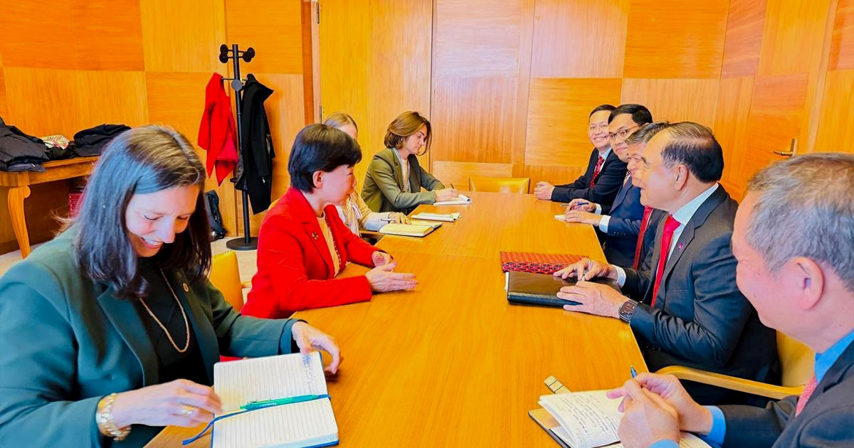 ក្នុងជំនួបនោះ លោកទេសរដ្ឋមន្រ្តី លី ធុជ បានលើកឡើងអំពីកិច្ចខិតខំប្រឹងប្រែងរបស់កម្ពុជា ក្នុងការបោសសម្អាតមីន និងសំណល់ជាតិផ្ទុះពីសង្រ្គាម អស់រយៈពេលជាង ៣០ឆ្នាំមកនេះ។ ក្នុងនោះ កម្ពុជាបានប្រែក្លាយពីប្រទេសមួយ ក្នុងចំណោមប្រទេសដែលមានរងគ្រោះធ្ងន់ធ្ងរបំផុតដោយសារមីន ទៅជាប្រទេសឈានមុខគេក្នុងការបោសសំអាត ការគ្រប់គ្រងព័ត៌មាន និងការគាំទ្រជនរងគ្រោះដែលបន្តរស់រានមានជីវិត។