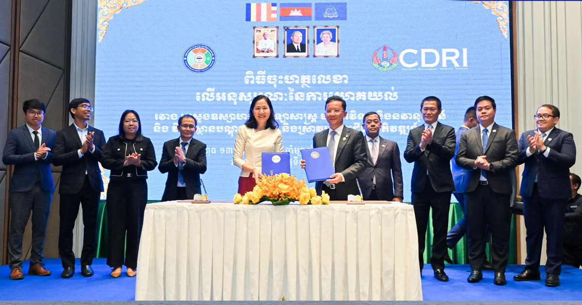 ភ្នំពេញ៖ ក្រសួងឧស្សាហកម្ម វិទ្យាសាស្រ្ត បច្ចេកវិទ្យា និងនវានុវត្តន៍ និងវិទ្យាស្ថានបណ្ដុះបណ្ដាល និងស្រាវជ្រាវដើម្បីអភិវឌ្ឍន៍កម្ពុជា (CDRI) នៅថ្ងៃទី៣ ខែធ្នូ ឆ្នាំ២០២៥ បានចុះអនុស្សរណៈនៃការយោគយល់ ដើម្បីសហការពង្រឹងការស្រាវជ្រាវ បង្កើតភស្ដុតាងវិទ្យាសាស្រ្ត ចែករំលែកព័ត៌មាន និងចំណេះដឹង សំដៅរួមចំណែកដល់យុទ្ធសាស្រ្ត គោលនយោបាយ និងបេសកកម្មរបស់ក្រសួង។