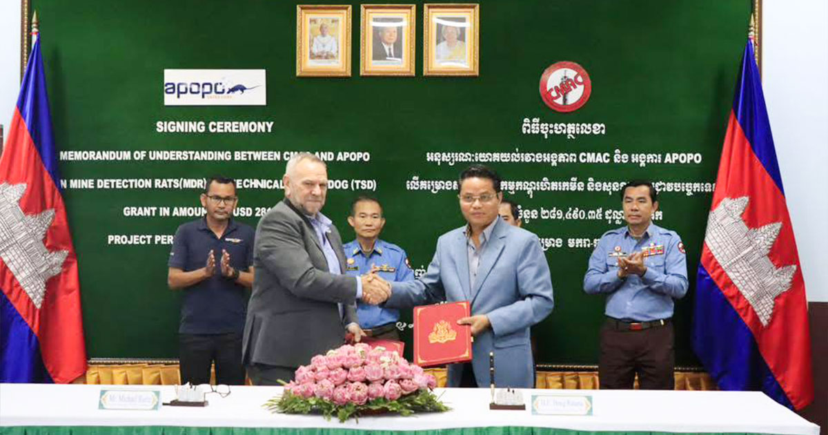 CMAC និង APOPO ចុះកិច្ចព្រមព្រៀងអនុវត្តគម្រោងសមាហរណកម្មកណ្តុរហិតមីន និងសុនខស្រាវជ្រាវបច្ចេកទេស