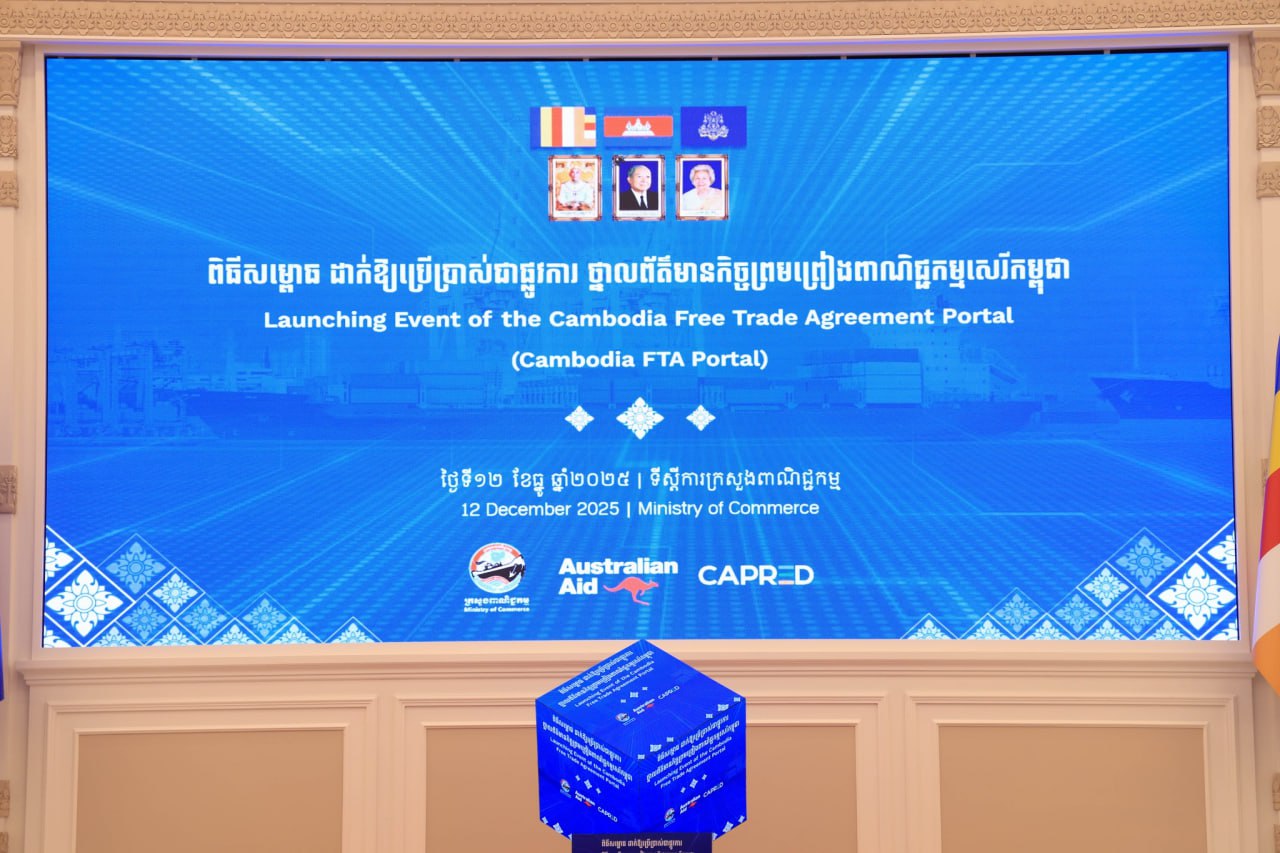 ភ្នំពេញ៖ លោកស្រី ចម និម្មល រដ្ឋមន្ត្រីក្រសួងពាណិជ្ជកម្ម និង លោក ដេរិក យីប (Derek Yip) ឯកអគ្គរដ្ឋទូតអូស្ត្រាលីប្រចាំនៅកម្ពុជា នៅថ្ងៃទី​១២ ខែធ្នូ នេះ សម្ពោធដាក់ឱ្យប្រើប្រាស់ជាផ្លូវការ ថ្នាលព័ត៌មានកិច្ចព្រមព្រៀងពាណិជ្ជកម្មសេរីកម្ពុជា (Cambodia FTA Portal) ដើម្បីផ្តល់ភាពងាយស្រួលដល់ការចូលប្រើប្រាស់ ស្វែងរកព័ត៌មាន និងទាញយកអត្ថប្រយោជន៍ជាអតិបរមាពីកិច្ចព្រមព្រៀងពាណិជ្ជកម្មសេរី ដែលកម្ពុជាជាសមាជិក។