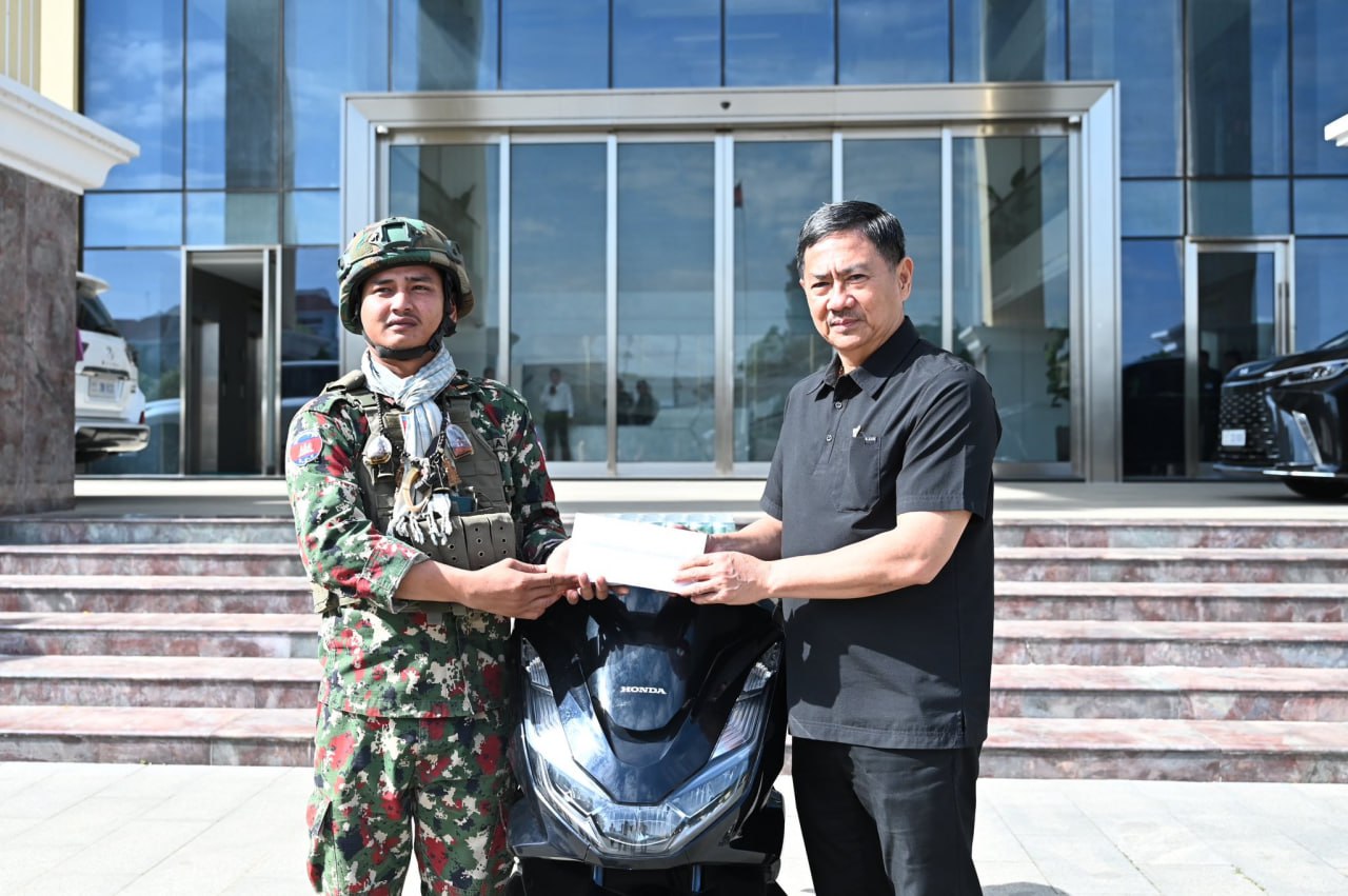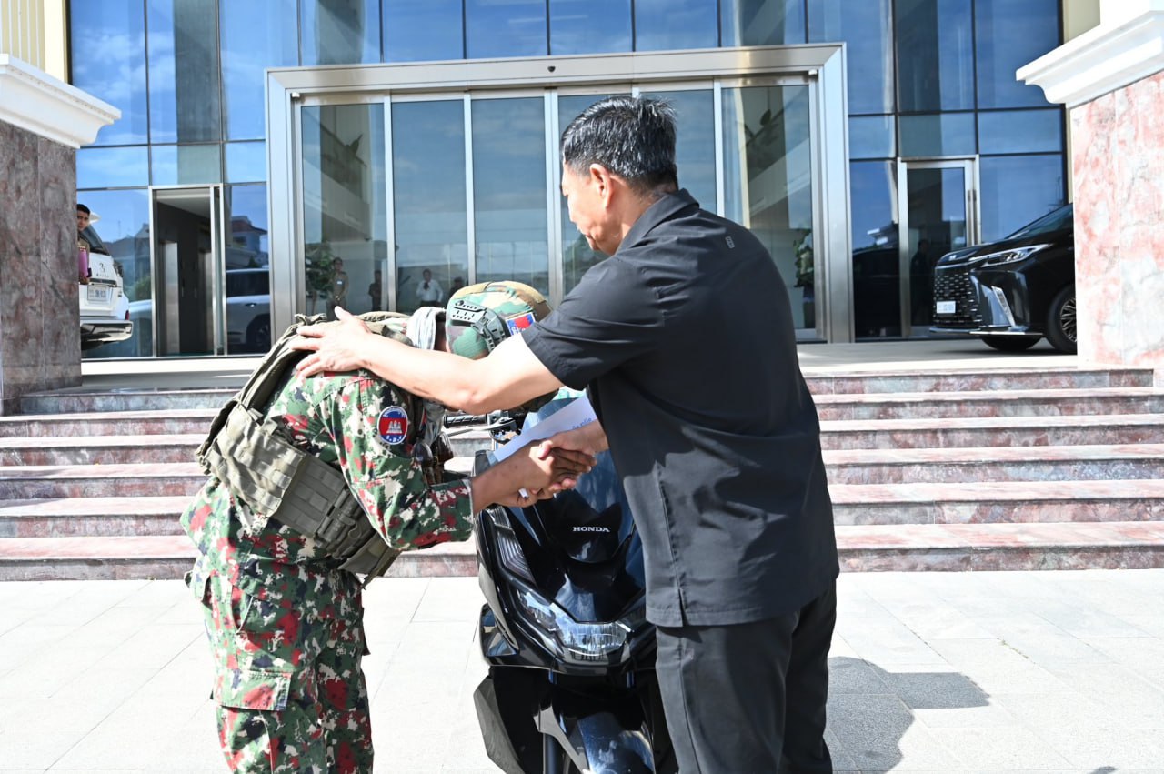 ភ្នំពេញ៖ នៅថ្ងៃទី៥ខែមករាឆ្នាំ២០២៦ ឯកឧត្តម ឧត្តមសេនីយ៍ឯក ជួន ណារិន្ទ អគ្គស្នងការរង និងជាស្នងការនគរបាលរាជធានីភ្នំពេញ និងលោកជំទាវ ហ៊ុន ស៊ីណាត បានអញ្ជើញជួបសំណេះសំណាលនិងប្រគល់ម៉ូតូ ០១គ្រឿង ជូនដល់វីរកងទ័ពក្រោយពីម្ចាស់ហាងបញ្ចាំម៉ូតូបានប្រគល់ម៉ូតូ ០១គ្រឿង នេះដល់វីរកងទ័ពវិញ។