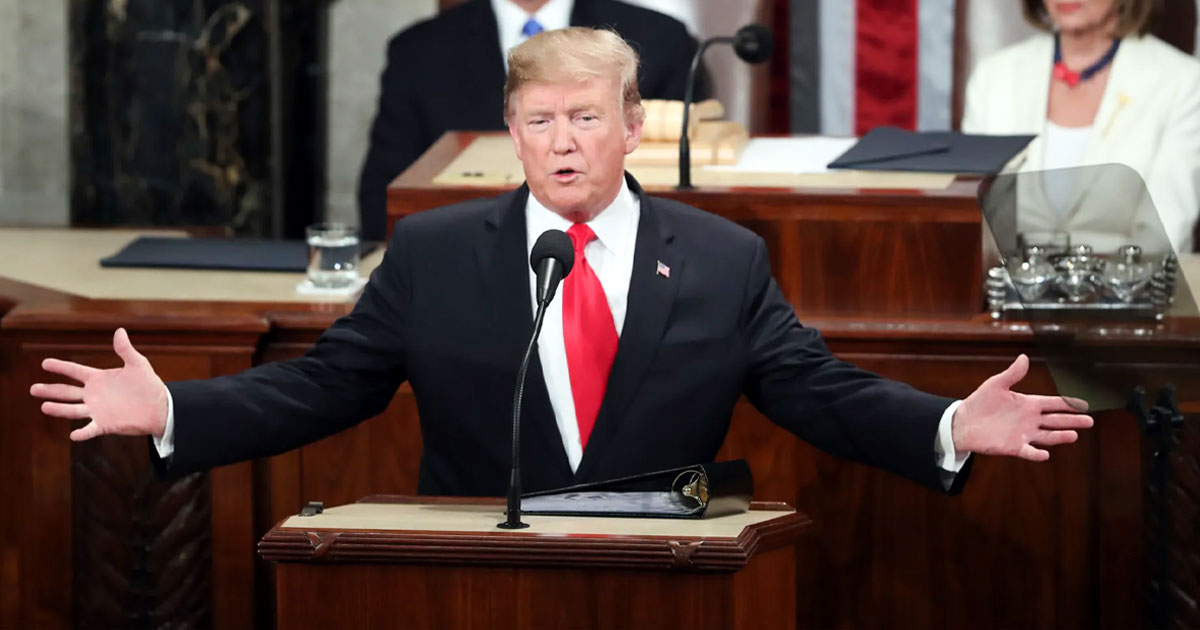 ការវាយតម្លៃរបស់លោក Trump លើស្ថានភាពរដ្ឋសហព័ន្ធដែលរួមមានរដ្ឋ និងដែនដីចំនួន ៥០ ស្ថិតក្រោមរដ្ឋាភិបាលសហព័ន្ធ ដែលកើតឡើងបន្ទាប់ពីមួយឆ្នាំពោរពេញដោយការផ្លាស់ប្តូរនយោបាយយ៉ាងខ្លាំង។