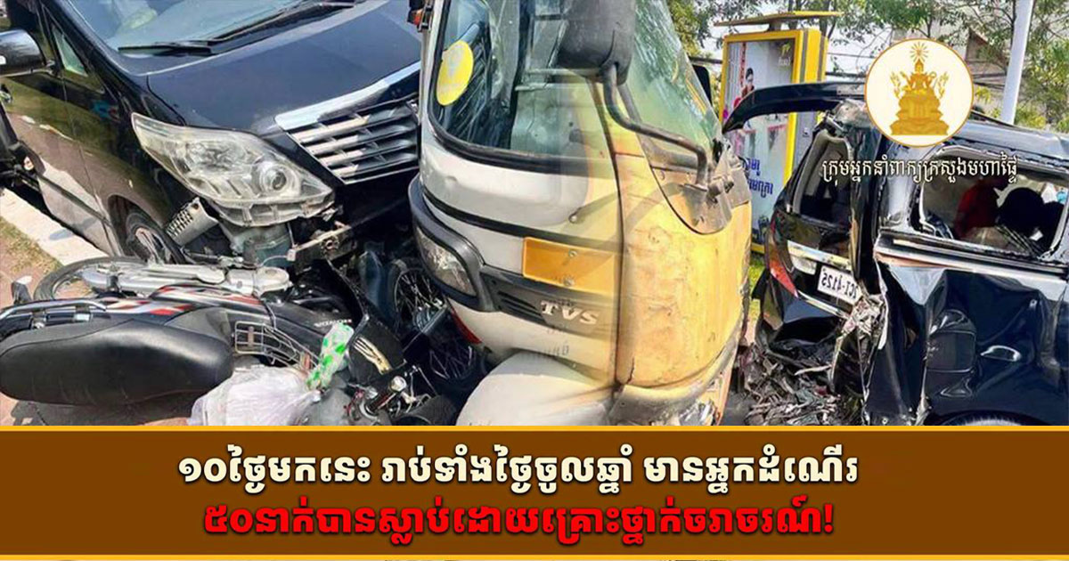 ១០ថ្ងៃ រាប់ទាំងថ្ងៃចូលឆ្នាំ មានអ្នកដំណើរ ៥០នាក់ បានស្លាប់ដោយគ្រោះថ្នាក់ចរាចរណ៍