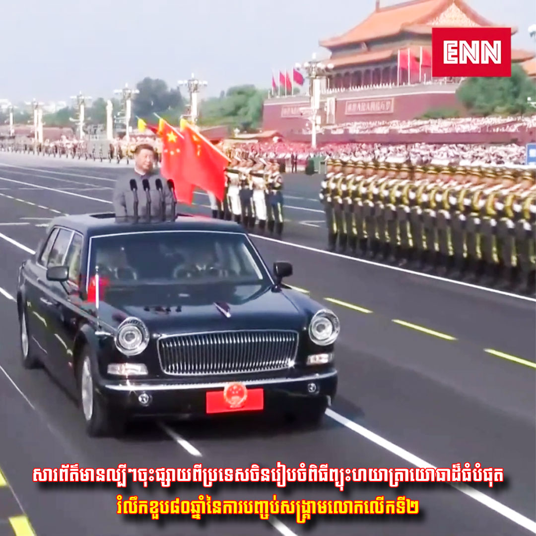 សារព័ត៌មានល្បីៗ ចុះផ្សាយពីប្រទេសចិន រៀបចំពិធីព្យុះហយាត្រាយោធាដ៏ធំបំផុតរំលឹកខួប ៨០ឆ្នាំ នៃការបញ្ចប់សង្គ្រាមលោកលើកទី២